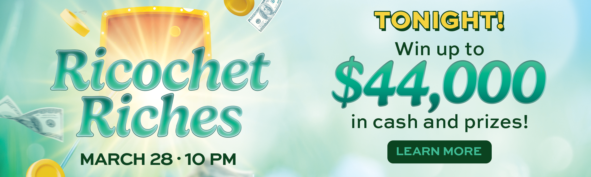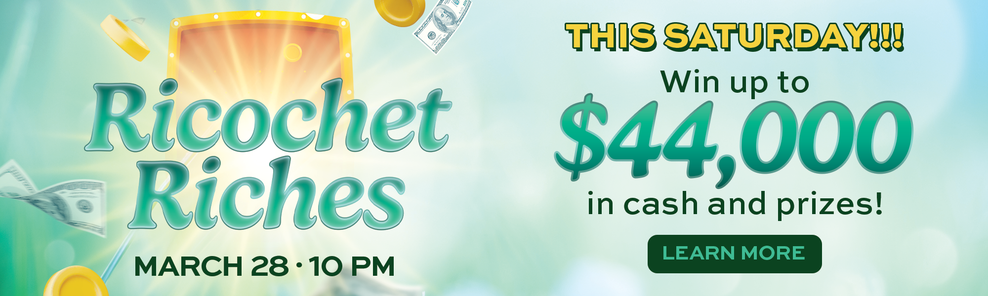 Join us this Saturday beginning at 3 pm Play a game of high low to determine how many discs you get to drop in our Ricochet Riches game! Win up to 6 discs March Finale Prize Drawings will be held on March 28, 2026 from 3 pm - 10 pm Late Night Hot Seats will...