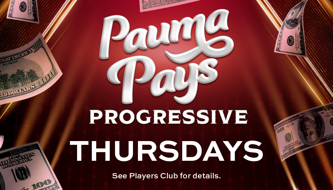 • Win 25 to 500 entries and up to $200 in Pauma Play Promotional Chips.