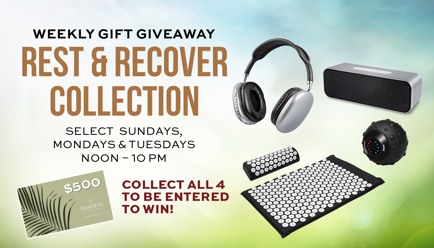 • Collect all 4 items to be entered to win a $500 Murrieta Hot Springs Resort gift card!